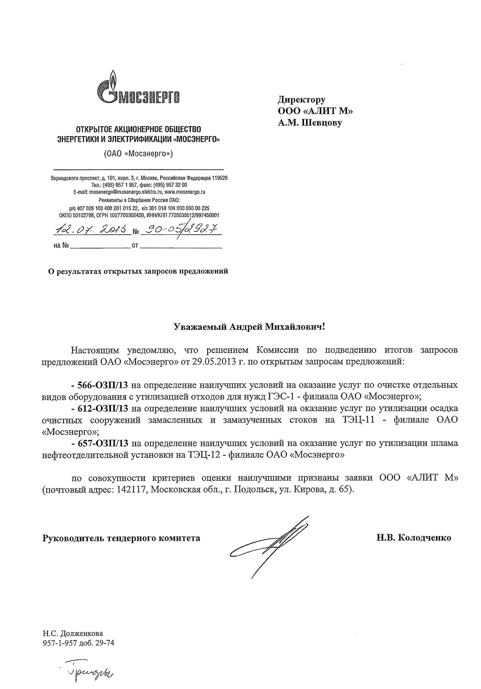 В мае наша компания победила в конкурсе на определение наилучших условий на оказание услуг по утилизации осадка сточных вод очистных сооружений на ТЭЦ-25-филиале ОАО "Мосэнерго" и на определение наилучших условий на оказание услуг по очистке от донных отложений с утилизацией осадка для нужд ТЭЦ-21 - филиала ОАО "Мосэнерго".